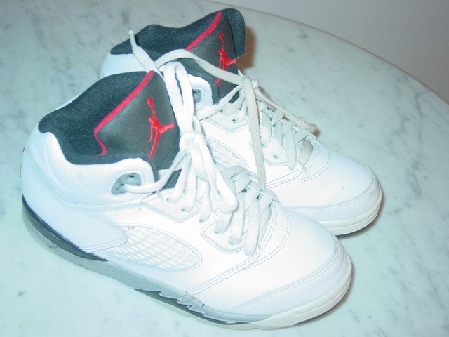 Air Jordan Retro 5 White Fire Red Black Preowned Size 6 5 Ebay